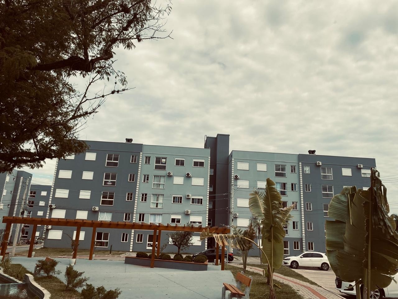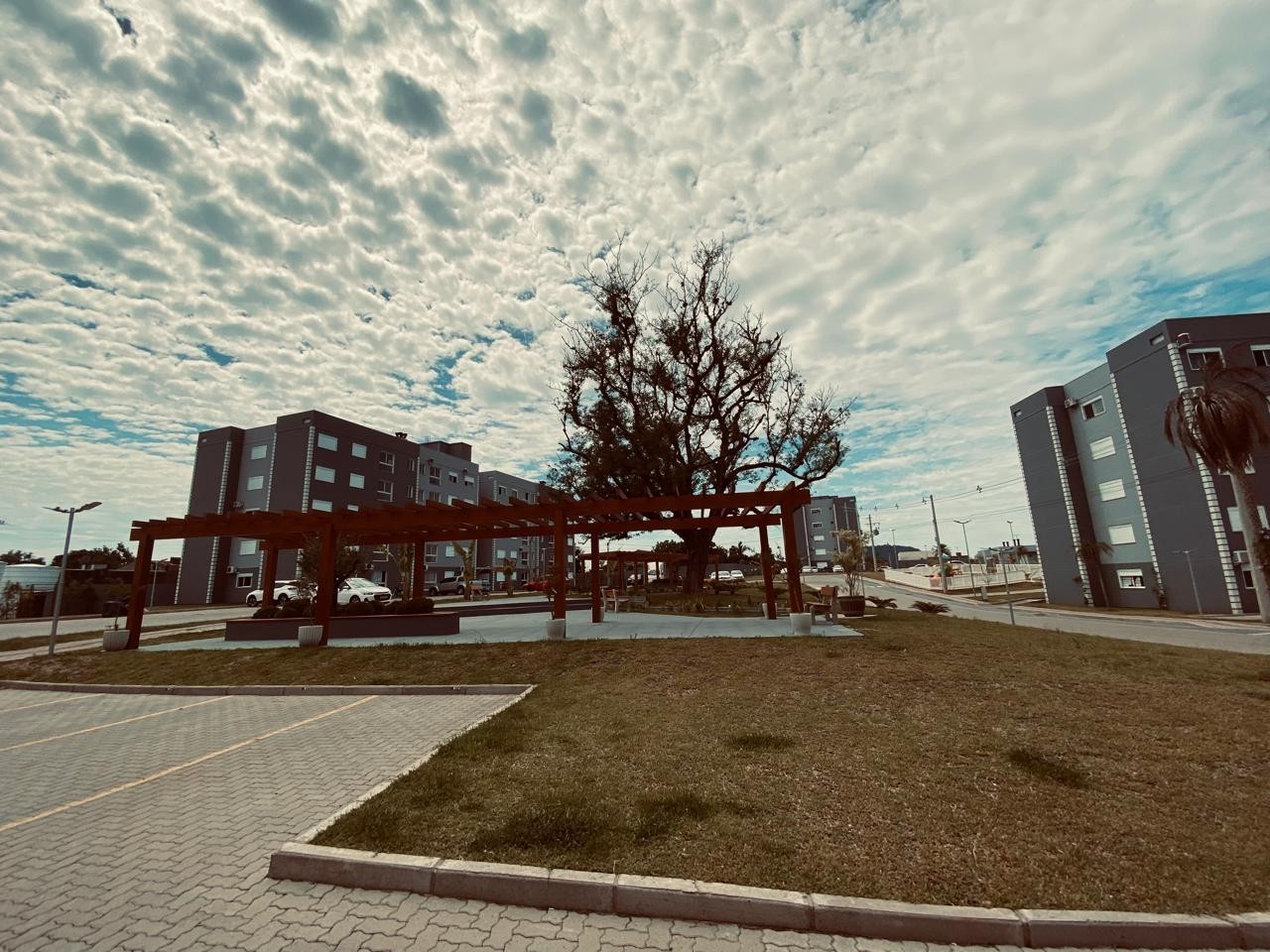 Chimarródromo com bancos e pergolados;